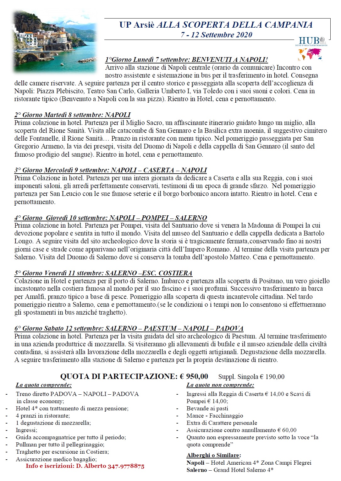 Dal 7 settembre al 12 settembre 2020, alla scoperta della Campania.